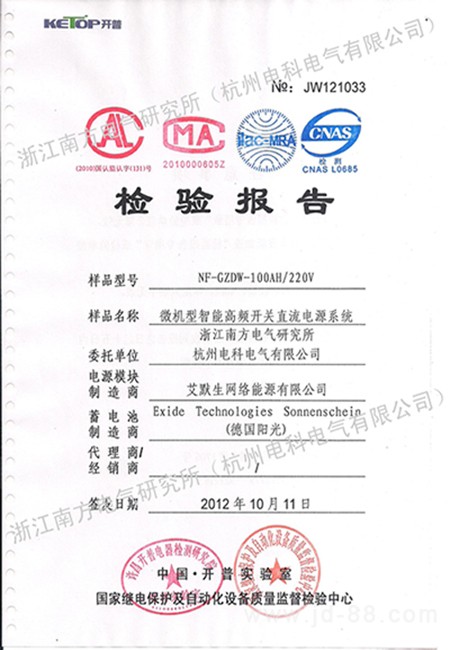 南方電科微機(jī)直流屏檢驗(yàn)報(bào)告(德國(guó)陽(yáng)光蓄電池+美國(guó)艾默生模塊)