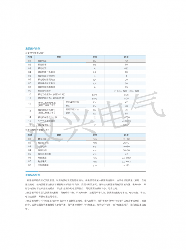 1斷路器采用旋弧式滅弧原理,利用電弧電流受到的磁場力,使電弧沿著某一截面高速旋轉(zhuǎn),由于電弧的質(zhì)量比較輕,在高 速旋轉(zhuǎn)時(shí),使電弧逐漸拉長并不斷接觸新鮮的SF6氣體,受到冷卻而熄滅。這種結(jié)構(gòu)斷路器具有滅弧能力強(qiáng),電壽命長,開 斷小電流時(shí)不會(huì)產(chǎn)生截流現(xiàn)象,不會(huì)引起操作過電壓等優(yōu)點(diǎn),同時(shí)需要的操作功小,可靠性高。